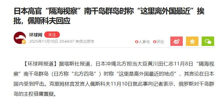 俄罗斯外交部发言人扎哈罗娃还表示,80年前这些岛屿上发生的激烈冲突,正是因为当时日本统治者的错误,而现在的日本政府,再次选择了侵略性的军国主义道路。
